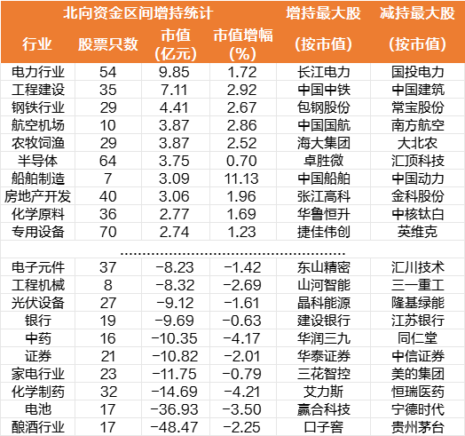 行业增仓方面,截至10月26日收盘的近5个交易日数据显示,电力行业被北向资金净买入金额最多,达到了9.85亿元,工程建设、钢铁行业分别排在第二、第三位,获增持金额为7.11亿元、4.41亿元,航空机场、农牧饲渔、半导体、船舶制造、房地产开发等行业增持金额相对靠前。酿酒行业本周遭净卖出48.47元,电池遭减持规模近37亿元,化学制药行业遭净卖出近15亿元,家电行业、证券、中药、银行等行业净卖出额规模靠前。