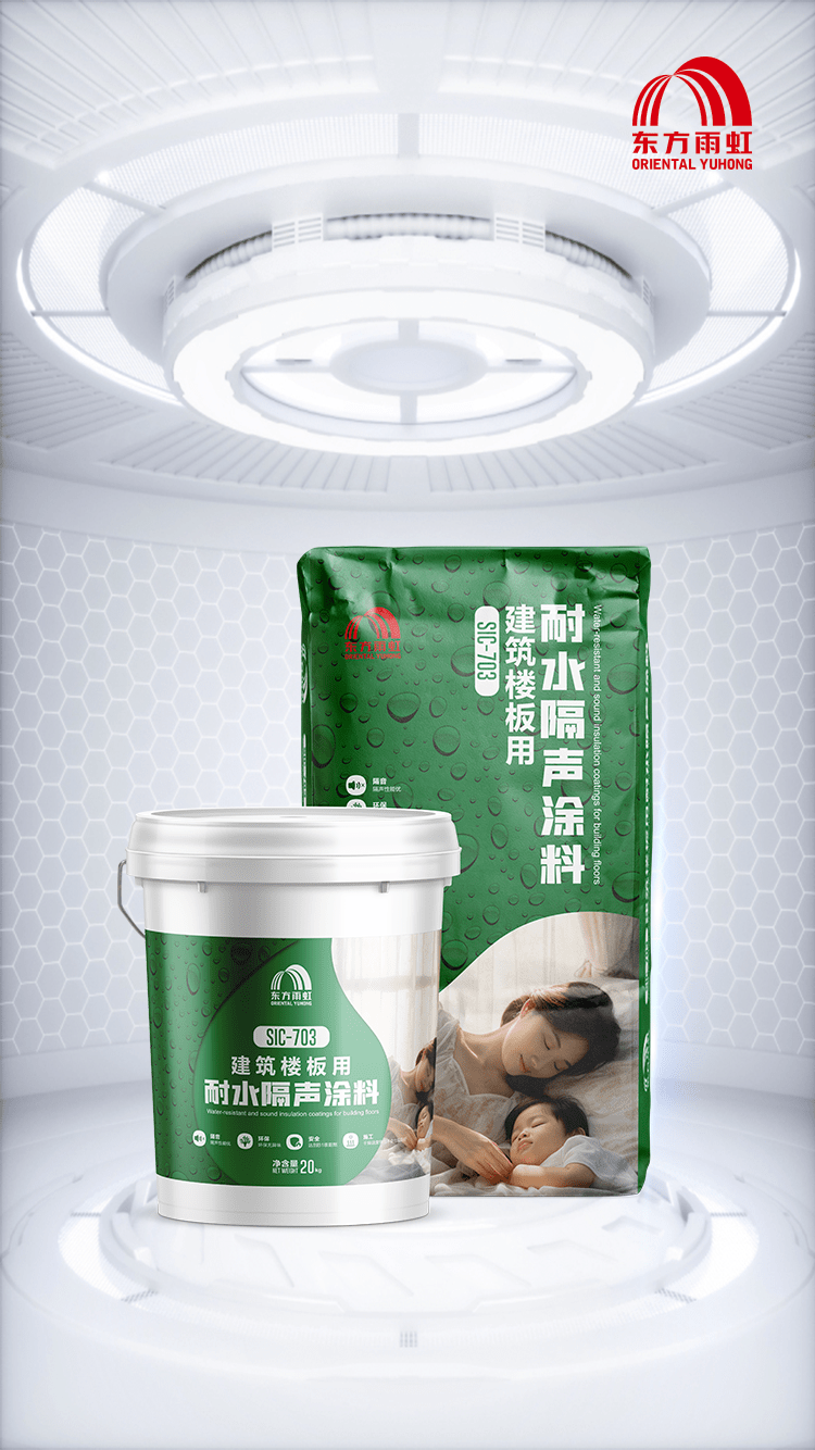 再比如,结合住宅类建筑室内噪音污染痛点以及人们对于居住环境品质提出的更高要求,东方雨虹研发推出集“防水、隔音、减震”为一体的功能型产品——SIC-703建筑楼板用耐水隔声涂料。该产品融合改性共聚乳液和多种添加剂组成的有机液料,与阻尼填料和多种添加剂组成的粉料,形成双组分水性隔声涂料。在基础防水功能的基础上,通过减少投射的声波能力,起到吸音隔音的功效。