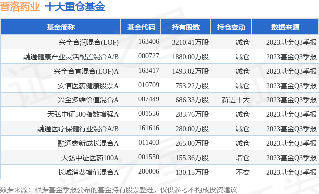 重仓普洛药业的前十大公募基金请见下表: