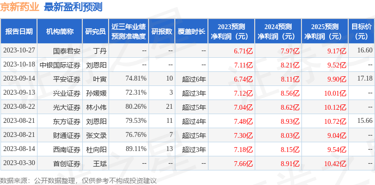 证券之星消息,2023年10月28日京新药业(002020)发布公告称西南证券杜向阳 刘潇、浙江美浓资产宣震、上海白溪私募金晨、光大证券自营陈峰 肖意生、金元顺安刘梦杨、红塔证券资管俞海海、深圳市景泰利丰投资邹军辉、上海景领投资傅深林、中信期货魏巍、亚太财产保险王婷、上海牛乎资产赵欣、茂源资本钟华、高毅资产王潇 胡储辉、上海煜德投资蔡苗、秋阳投资郑捷、上海禧弘私募赵然、巨杉资产沈子雅、上海途灵资产赵梓峰、致合(杭州)资产杜泰丰、南华基金刘凯兴、沙钢投资叶侃、Point72 Hong Kong Limited王佩、海南盖亚青柯私募沈润、世纪自营陈峰、长城财富保险资产胡纪元、安信基金孙凌昊、中信证券沈威宇 郑浩洋、上海紫阁投资邱诗、Brilliance(才华资本/财誉资产)任昊翔、民生加银王雪刚、西部证券李梦园 邓琳茜、璞智投资温灵军、银华基金石枞、野村东方国际证券张熙、深圳宏鼎刘璐璐、北京大道兴业投资黄华艳、国寿安保刘志军、中银基金姚卫巍 王帅、中科沃土基金孟禄程、东方证券王光宇、上海聚鸣投资涂健 惠博闻、杭州中大君悦投资徐凌、上海名禹资产王友红、兴银理财卢新平、摩根基金叶敏、明世伙伴基金靳丰蔚、兴合基金景莹、北京东方睿石投资唐谷军、信达证券汪旭敏 阮帅、博远基金谭飞、南通天合投资郑茜、上海玖歌投资赖正健、恒生前海基金鲁娜、上海混沌投资张昕、长城基金陈蔚丰、景顺长城陈婧琳、泰康资产贺一 王宇行、弘毅远方基金鲍超、北大方正人寿资管徐磊、东吴基金朱冰兵、诺安基金黄友文、国寿安保基金谭峰英、国融自营赵小小、上海永唐盛世私募杜之鹏、安信国际张擎柱、北京泾谷私募高艺、望正资产高敏、凯丰投资裴彦春、凯石基金许迟、中海童科贤、惠州金山湖投资郑光强、相聚资本邓巧、招商基金、青骊投资赵栋、灏浚投资柯海平、汉享投资叶涛金、金元证券杨宜霏、天风证券李慧瑶、鹏扬基金王雪刚 伍智勇、大筝资管罗晓梅、上海宽远资产李韵滢、民生证券王维肖、健顺投资张琦悦、北京厚特投资陆飞、国泰君安证券吴晗、深圳量度资本投资罗涛、建信养老金谭翔宇 王新艳、深圳市康曼德欧浩、东吴证券宋金洋 于彦秋 刘若彤、上海肇万李大瑞、中邮创业王霞、淡水泉朱彬、富安达基金李飞、宇泽(武汉)私募何俊骏、复通私募余音、重庆穿石投资王俊、天风资管王漪昆 邱天、中国光大资产徐德仁、青岛金光紫金创业投资雷静、银河证券孙怡、金信基金谭智汨、深圳市榕树投资李立明、深圳中天汇富基金许高飞、光大保德信高睿婷、混沌投资杨欣怡、平安养老保险陶歆蔚、深圳市尚诚资产黄向前、深圳市兆丰禾投资陈召洪、中信资管沈威宇、PinPoint 上海保銀投資Yan Bing Liang、申万证券张静含 仰佳佳、永赢基金陆海燕 安福廷 胡亚新 黄子川、兴证全球基金谢长雁、西藏合众易晟投资王华均、中海基金陈玮、嘉实基金齐海滔 周静、俊腾投资毛楠杰、格林基金唐嘉晨、人寿资产赵文龙、阳光资产王晓君 赵孟甲、深圳前海华杉投资何銳、工银国际吴亚雯、太平基金田发祥、汇泉基金曾万平、招商证券资管王雅洁、Brilliance Asset ManagementHank Ren、中融基金项薇、深圳金泊投资陈佳琦、深圳市明达黄俊杰、上海杭贵投资饶欣莹、平安理财袁野、华西基金刘佳妍、北京泾谷高艺 蒋海、开源证券刘艺、太平洋证券周豫 刘哲涵、中意资产马成骥 翟琳琳、盘京投资曹姗姗、国华兴益资管孙如琼、中欧基金王琪、广发基金王蓄锐、蓝墨投资黄隆堂、光大永明资产吴涛、汇添富基金张韡 陈潇扬、长盛基金张伟光 郝征 黄施齐、天治基金王娟、东方红基金徐宏、首创证券王斌、宁银理财徐厚犇、中国人民养老保险毛雅婷、磐耀资产甄一男、泰康养老康子冉、明河投资张桥石、华泰证券孙可嘉 李奕玮、安信证券连国强、运舟公司王岩、贺腾李琼、华泰自营李艳光 许泽昊、吉渊投资蒋栋、财通基金戚梦嘉 王靖瑄、上海玖鹏资产陆漫漫、工银安盛人寿资管劳亭嘉、亚太财险田春燕、国新证券秦墅隆、兴业证券邹文凯、益民基金解骄阳、红土创新杨一 陈若劲、国盛证券胡偌碧、承珞资本林田心、东海证券自营施杨扬、平安证券叶寅 韩盟盟 臧文清、德邦证券陈铁林 李强 吴沛柯、国金证券袁维 王琦、上海鹤禧私募潮礼君、东兴基金马成骥、上海明河投资张桥石、万和证券许俊武于2023年10月27日调研我司。