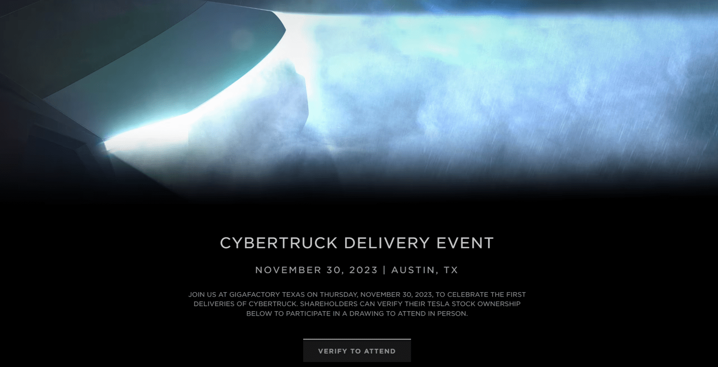Cybertruck 电动皮卡交付活动定于 11 月 30 日举行,位于为德克萨斯州奥斯汀的 Gigafactory 超级电池工厂。
