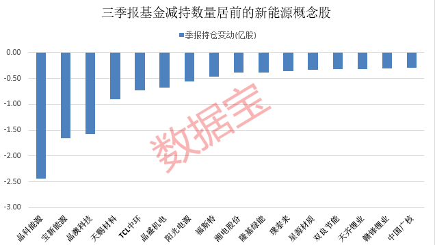 晶科能源、宝新能源、晶澳科技在第三季度中均遭到基金减持超亿股。银华基金基金经理李晓星管理的银华心怡三季度大幅减仓新能源相关个股,德业股份、晶澳科技、锦浪科技等均退出该基金前十大重仓股。知名基金经理冯明远管理的信澳新能源产业在第三季度中减仓新能源,加仓电子行业个股,十大重仓股中的5只电子股的持股量出现大幅增加。
