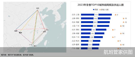 而航班管家近日发布的《2023年冬春航季国内定期客运航班数据解读》显示,从航线周频来看,冬春航季Top10城市线皆为商务线,涉及北京、上海、广州、深圳、成都、重庆以及杭州7座城市,其中6条航线与北京有关。在众多新增和加密的城市干线中,北京再次成为多家航司的“必争之地”。