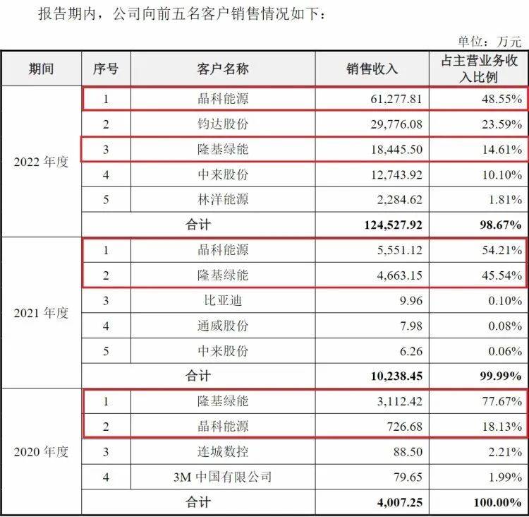 拉普拉斯表示,公司报告期内对隆基绿能及晶科能源销售规模大幅增长主要受益于产业规模和客户经营规模的持续增长、新技术产业化落地,与产业发展趋势一致;公司对隆基绿能、晶科能源的销售情况与客户本身的产量、出货量趋势一致,与相关客户的公开披露信息一致,不存在客户与发行人虚构交易、为发行人囤货等情形。