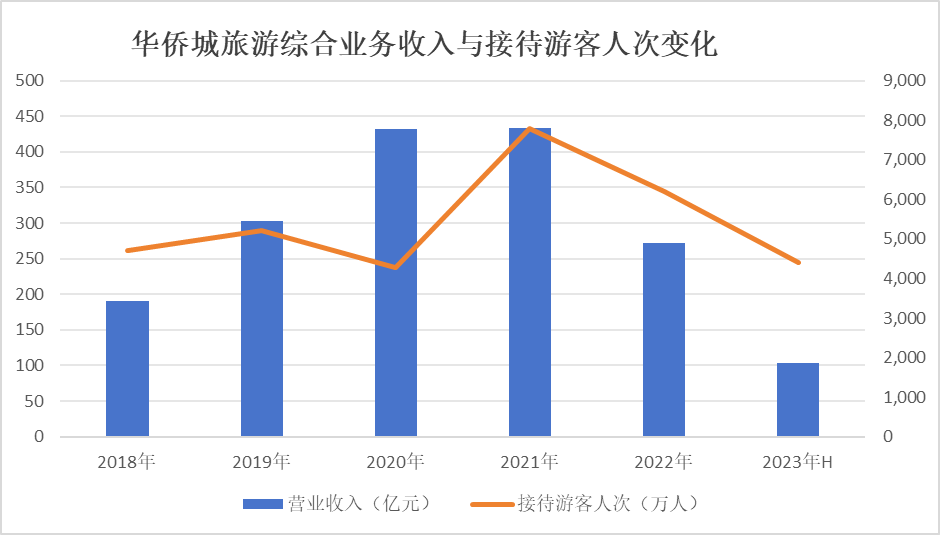 这种做法导致了一种情况出现,即接待游客人次尽管与旅游景区业务收入正向相关,反映在华侨城财报中的“旅游综合业务”时却并不完全相关。