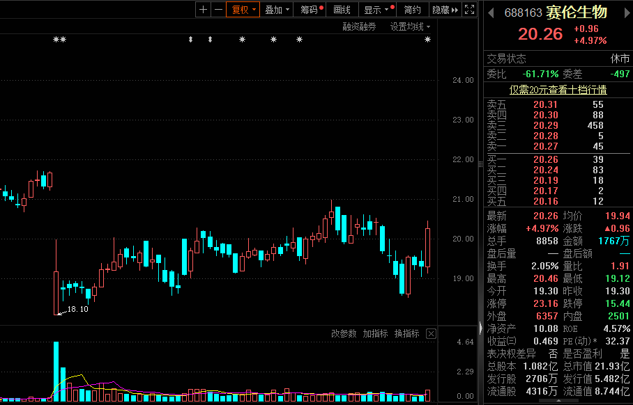 此前,赛伦生物披露,该公司7月29日收到实际控制人之一、董事长、法定代表人范志和家属的通知,其家属于当日收到上海市监察委员会签发的《留置通知书》和《立案通知书》,范志和因涉嫌职务犯罪被实施留置并立案调查。7月31日赛伦生物开盘后,股价大幅低开,日内跌幅11.53%。