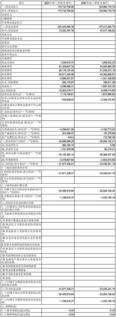 本报告期归属于上市公司股东的净利润(不含股份支付)为2,937,310.76元,同比扭亏为盈;年初至本报告期末归属于上市公司股东的净利润(不含股份支付)为-19,414,964.49元,亏损同比收窄11.77%。
