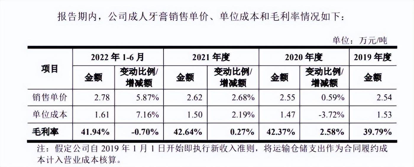 登康口腔旗下拥有冷酸灵等品牌,其招股书显示,2019年至2021年,公司成人牙膏的单位成本分别为1.53元、1.47元以及1.50元。
