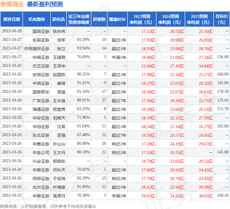 华福证券有限责任公司刘畅,张东雪,王瑾璐近期对舍得酒业进行研究并发布了研究报告《商务消费承压背景下腰部产品持续发力,长期增长势能足》,本报告对舍得酒业给出买入评级,认为其目标价位为136.00元,当前股价为113.4元,预期上涨幅度为19.93%。