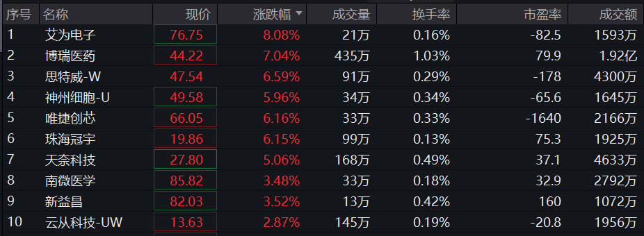 科创100ETF(588190)紧密跟踪上证科创板100指数,截至2023年10月30日9:32,指数成份股中,艾为电子领涨8.08%,博瑞医药上涨7.04%,思特威-W上涨6.59%,神州细胞-U、唯捷创芯等个股跟涨超6%。