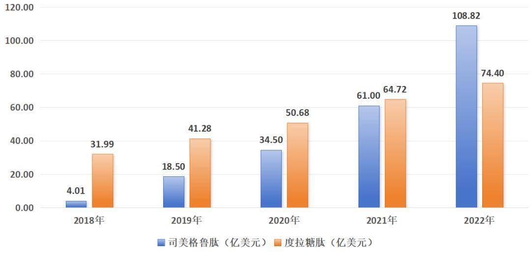 图:司美格鲁肽与度拉糖肽营收趋势,来源:锦缎研究院