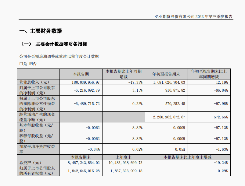 原标题:弘业期货前三季增收不增利 净利同比下降96.84%