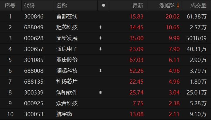 上证报中国证券网讯 10月30日,算力概念股震荡拉升,截至9时52分,首都在线20%涨停,弘信电子、亚康股份等涨超7%。