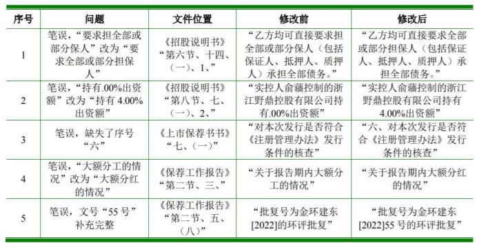 意料不到的是,在已有“前科”的情况下,安信证券两名保荐代表人又犯了明显的低级错误。据审核问询回复函,野风药业此次申报的保荐工作报告中的“内核委员会成员意见及表决结果”部分,野风药业名称被写错。除此之外,招股书中还有漏字、漏填数字以及错字、缺失序号等5处低级错误。