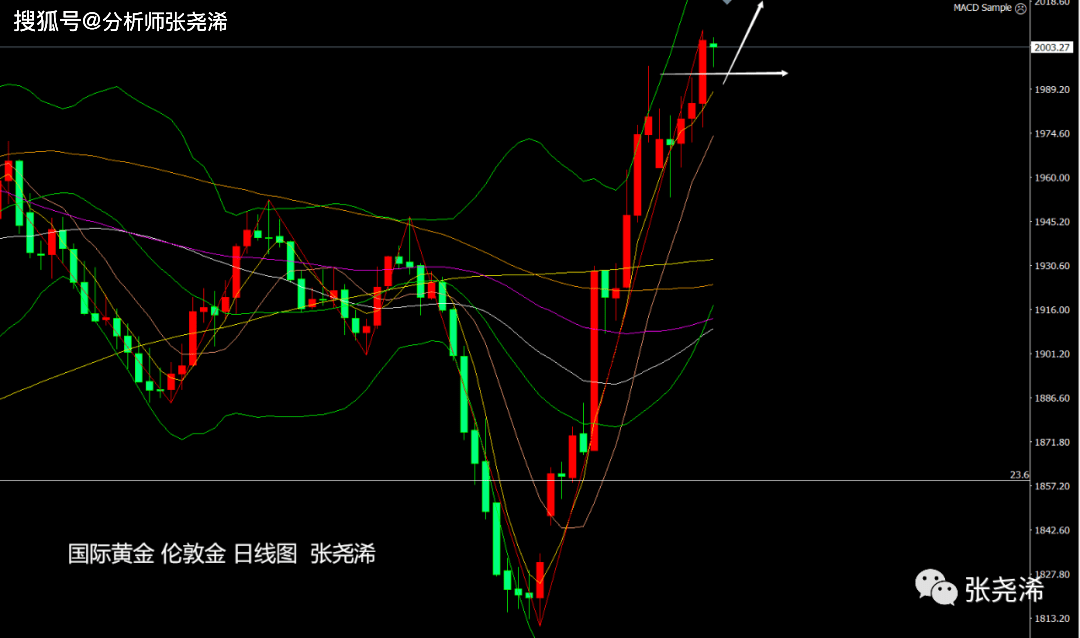 所以,在金价处于2000美元上方,我们需要谨慎看涨。除非你是长期未来几年保持看涨,否则仍需注意回调修正的空间。如金价再度下探百周线支撑,以及处于1800美元一线或下方,那都将是再度逢低看涨的机会。