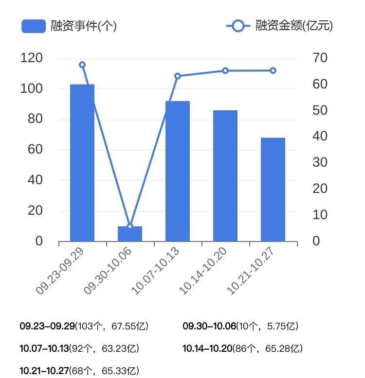 根据睿兽分析监测数据,本周国内一级市场披露的融资事件68个, 与上周相比减少18个, 其中已披露融资金额的事件48个, 总融资规模为65.33亿元人民币, 平均融资金额为1.36亿元人民币。