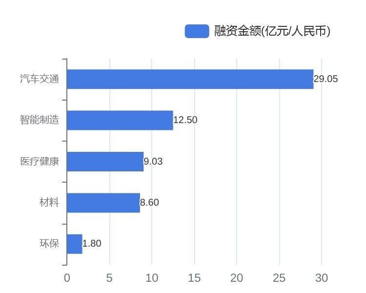 从已披露金额事件的融资规模来看,汽车交通最高,融资总规模约为29.05亿元人民币。其中豪华智能电动汽车初创品牌 「宾理BeyonCa」 获数亿美元 B轮融资。