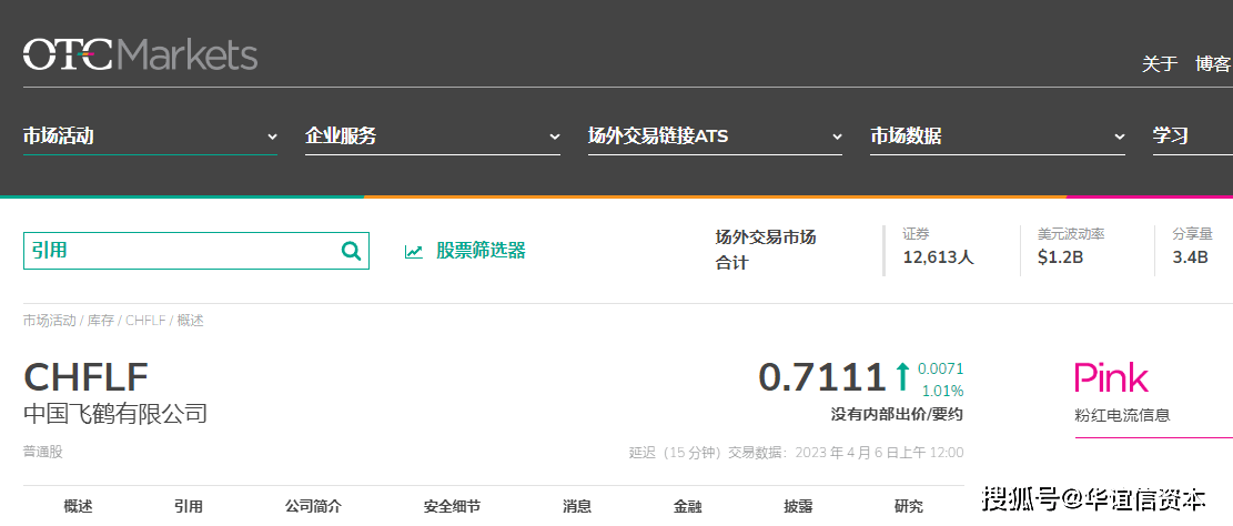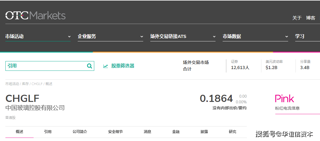 此外,也有不少中国企业在OTC pink市场交易,例如中国飞鹤有限公司、中国玻璃控股有限公司等。