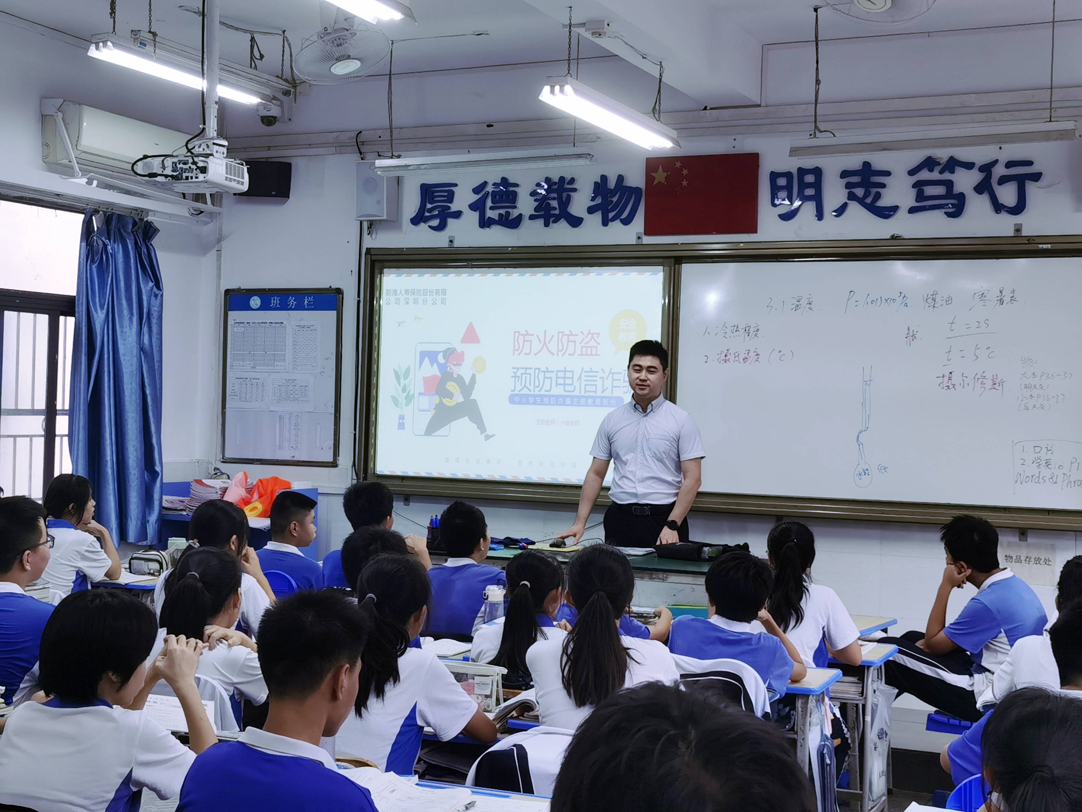 前海人寿深圳分公司前往红岭实验学校(新洲)开展金融知识进校园消保教育宣传活动,为学生们讲授防火防盗防电信诈骗知识,通过生动典型的案例为青少年分析诈骗套路,帮助学生筑牢反诈骗思想屏障,强化青少年的反诈能力。