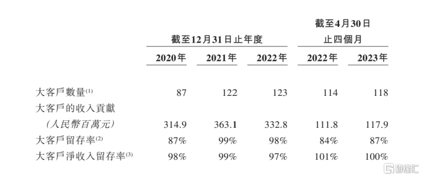 值得注意的是,2020年至2022年间,公司的大客户数量从87个上升至123个,增长幅度高达41.37%,2022年大客户留存率高达98%,可见增量大客户开拓工作卓尔有效、存量大客户黏性较强。尽管收入和订单节奏受到疫情扰动,但相信随着经济活动的常态化,行业的至暗时刻已经过去,公司业务增速有望突破压制形成有效反弹。