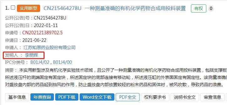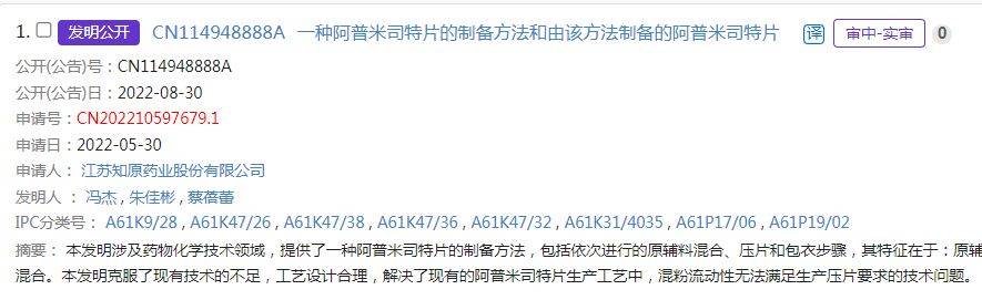 其中阿普米司特片项目投入1955.41万元,主要参与人员王学政、冯杰、刘永波、陈玉兰、朱佳彬、蔡振一、陈尧、吕鹤涛,形成专利两项,分别是实用新型CN202121389702.5发明专利CN202210597679.1。但据公开资料显示,实用新型CN202121389702.5专利发明人是李朋辉,CN202210597679.1发明人之一蔡蓓蕾,两人均不是招股书披露的项目的主要参与人员。