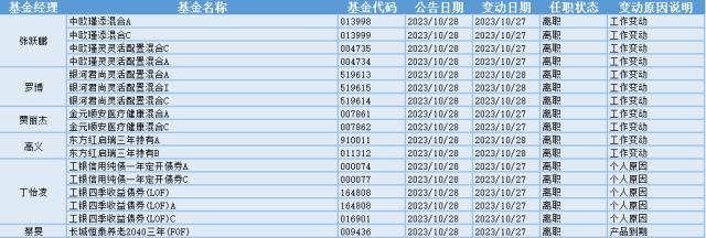 根据巨灵统计的数据显示,近30天(9.30-10.30)共有193只基金产品的基金经理发生离职变动。其中今天(10.30)有17只基金产品发布基金经理离职公告,从变动原因上来看,有4位基金经理是由于工作变动而从管理的11只基金产品中离职的,有1位基金经理是由于个人原因而从管理的5只基金产品中离职的,有1位基金经理是由于产品到期而从管理的1只基金产品中离职的。