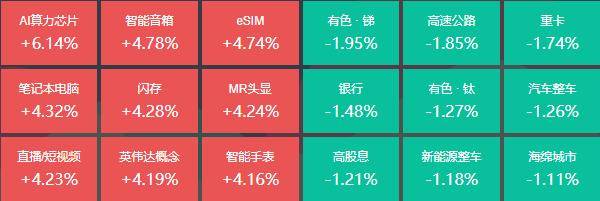 10月30日A股三大指数强劲反弹,截至收盘,沪指涨0.12%,收报3021.55点;深证成指涨1.61%,收报9927.99点;创业板指涨2.48%,收报1977.69点。从板块行情上来看,今日表现较好的AI算力芯片、智能音响、eSIM板块,而有色锑、高速公路、重卡等板块下跌,北向资金实际净买入4.30亿元。