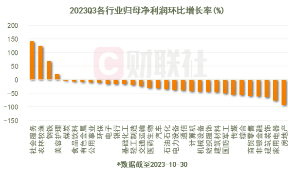 而已披露的三季报显示,消费领域内部各行业分化也较为明显。申万一级行业中,目前社会服务、农林牧渔、美容护理行业三季报盈利增长领跑大类,食品饮料、纺织服饰、家用电器等行业仍待改善。