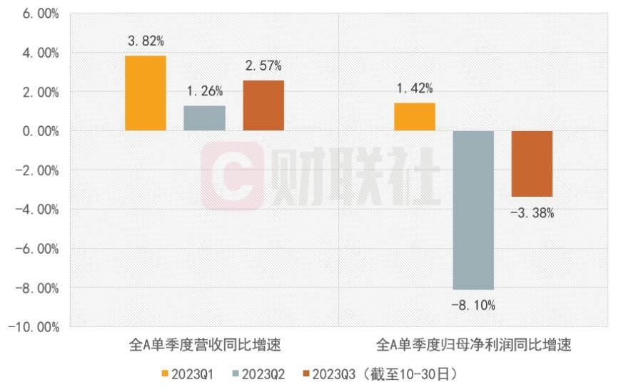 至10月30日,2023年三季度全A的营收与净利已呈现出离开底部区域的态势。