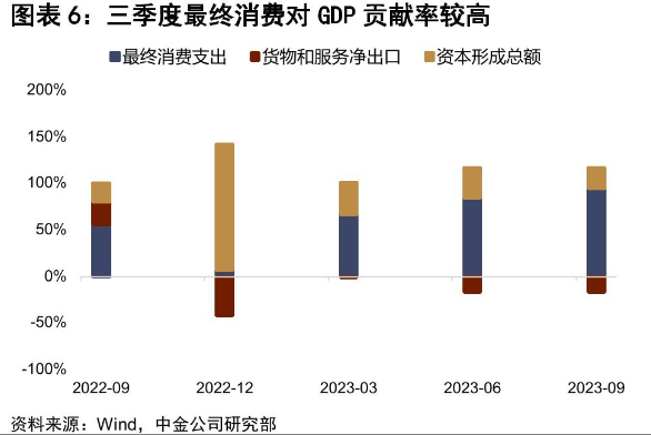 三季度,我国GDP同比增长4.9%,超出市场预期。其中消费增速大幅提高,9月社会消费品零售总额同比增长5.5%,连续两个月增速回升。天风证券观点认为,最终消费是GDP高增的主要原因。社零增速回升既有基数因素,也是居民消费能力修复的体现。