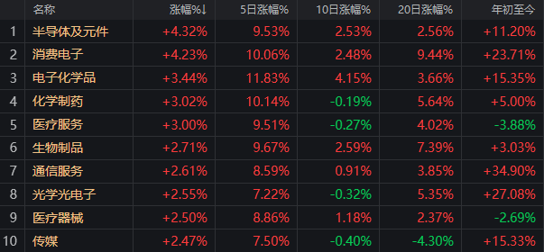 另外,从消息面上看,近期中美关系修复消息频传。有观点称,半导体和医药领域有望借此机会进一步打开合作空间,这也使两个板块自上周五开始就持续走强。