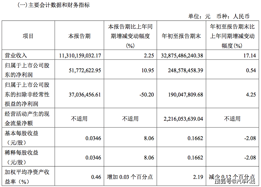东风汽车也披露了三季度报告,前三季度公司实现营业收入91.67亿元,同比增长0.48%;归母净利润3,730.47万元,同比下降61.95%。