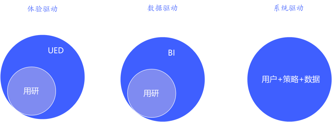 相比于数据驱动的团队,用研很容易沦为大数据的辅助工具从而被替代和忽视,战略驱动的团队能够平等对待行业市场分析,用户研究,数据分析三条职能线,用户研究能够独立地发挥价值。
