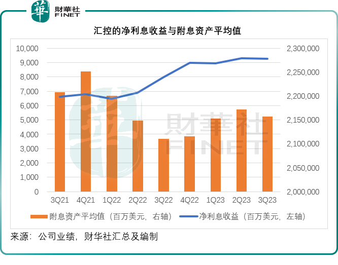 2023年第3季,汇丰控股的净利息收入同比增长15.51%,至92.48亿美元,仍是其最大的收入来源,其中附息资产平均值按年扩大2.22%,至2.157万亿美元,以及附息资产孳息率按年提升235个基点,至5.00%,是推动其净利息收益增长的主要原因,而附息资产孳息率上升,应主要得益于美联储加息。