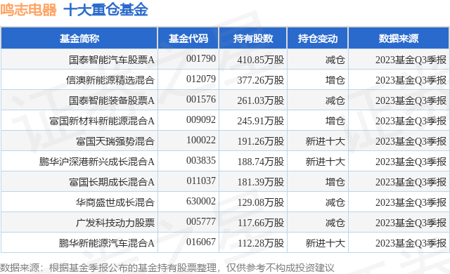 根据2023基金Q3季报公募基金重仓股数据,重仓该股的公募基金共46家,其中持有数量最多的公募基金为国泰智能汽车股票A。国泰智能汽车股票A目前规模为48.81亿元,最新净值1.957(10月27日),较上一交易日上涨2.25%,近一年下跌13.22%。该公募基金现任基金经理为王阳。王阳在任的基金产品包括:国泰智能装备股票A,管理时间为2018年11月13日至今,期间收益率为139.92%;国泰价值精选灵活配置混合A,管理时间为2019年8月15日至今,期间收益率为55.52%;国泰价值先锋股票A,管理时间为2021年3月9日至今,期间收益率为-13.94%。