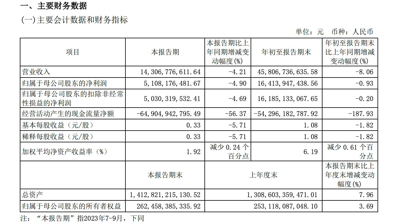 第三季度,中信证券实现营收143.07亿元,同比下降4.21%;净利润51.08亿元,同比下降4.9%。今年前三季度,中信证券营收、净利润分别为458.07亿元、164.14亿元,同比下降8.06%、0.93%。