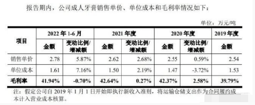 登康口腔旗下拥有冷酸灵等品牌,其招股书显示,2019年至2021年,公司成人牙膏的单位成本分别为1.53元、1.47元以及1.50元。