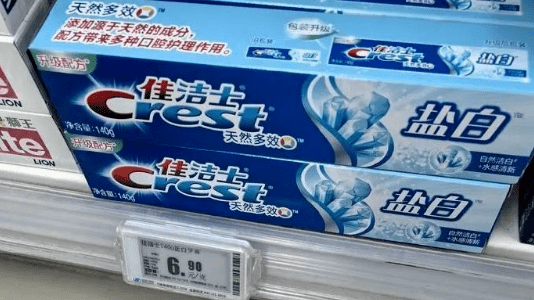 白玉、田七等国产老牌牙膏仍在售卖,单支价格多在10元以下;一款销量较高的佳洁士强根固齿牙膏,价格仅为4.5元。此外,一些非知名品牌的牙膏也较为便宜。