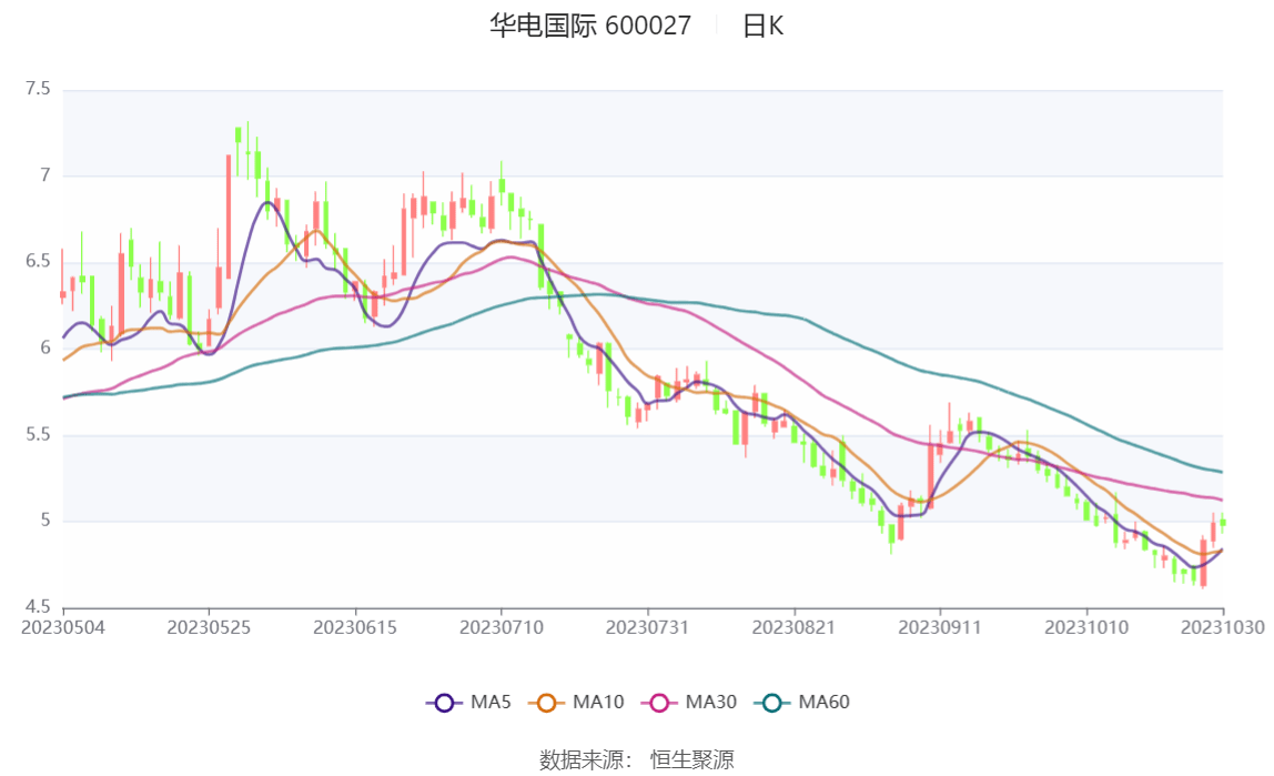 以10月30日收盘价计算,华电国际目前市盈率(TTM)约为22.52倍,市净率(LF)约为0.69倍,市销率(TTM)约为0.43倍。