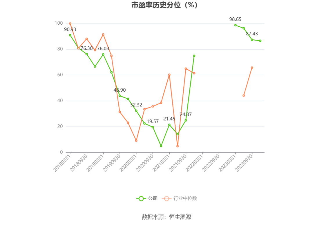 市盈率为负时,不显示当期分位数,会导致折线图中断。