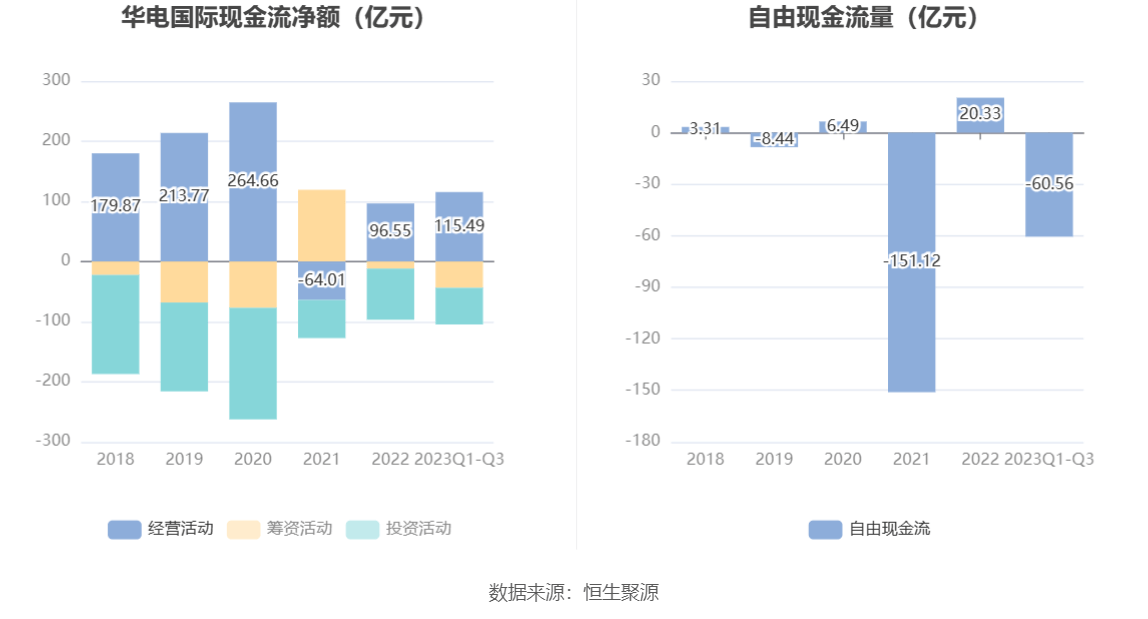 进一步统计发现,2023年前三季度公司自由现金流为-60.56亿元,上年同期为-28.27亿元。