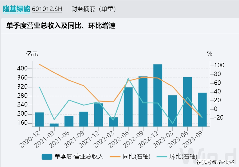 【财报季】光伏概念股中市值最高的公司隆基绿能,前三季度营收增速回落至不到两位数,主要受三季度营收下滑影响。
