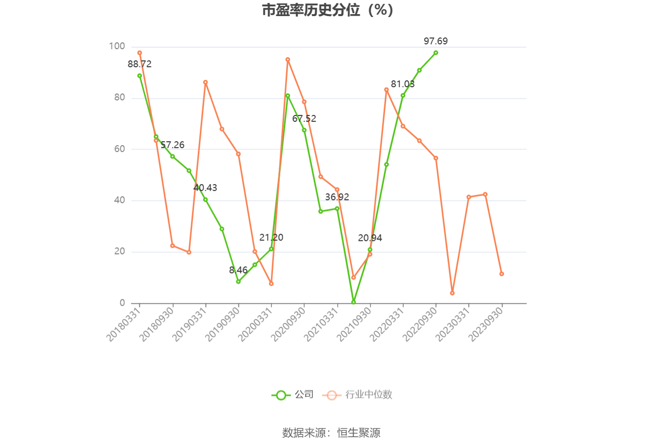 市盈率为负时,不显示当期分位数,会导致折线图中断。