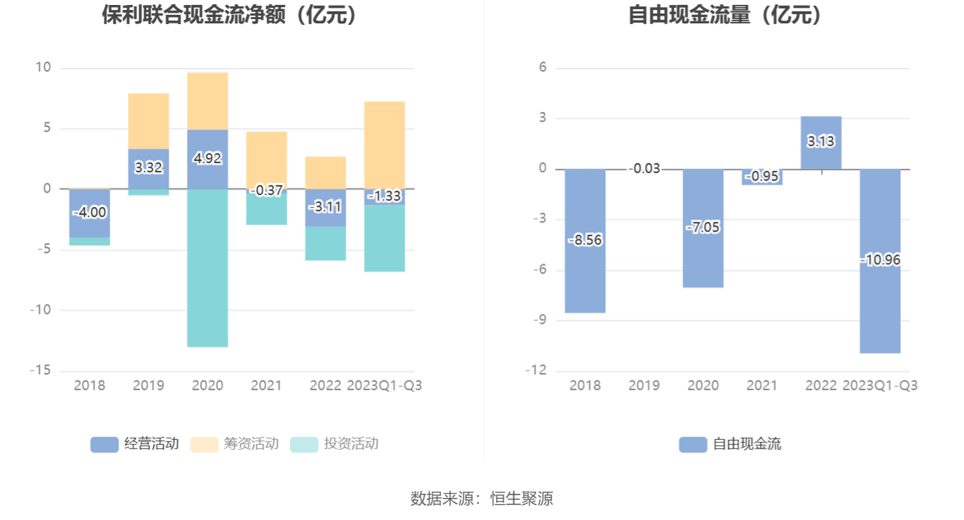 进一步统计发现,2023年前三季度公司自由现金流为-10.96亿元,上年同期为-4.86亿元。