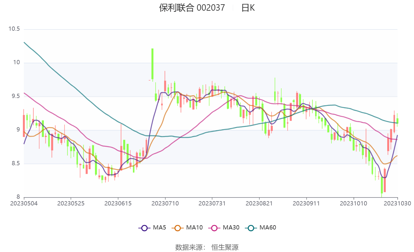 中证智能财讯 保利联合(002037)10月31日披露2023年三季报。2023年前三季度,公司实现营业总收入49.87亿元,同比增长19.62%;归母净利润7481.41万元,同比扭亏;扣非净利润7348.43万元,同比扭亏;经营活动产生的现金流量净额为-1.33亿元,上年同期为-3.08亿元;报告期内,保利联合基本每股收益为0.1546元,加权平均净资产收益率为2.86%。