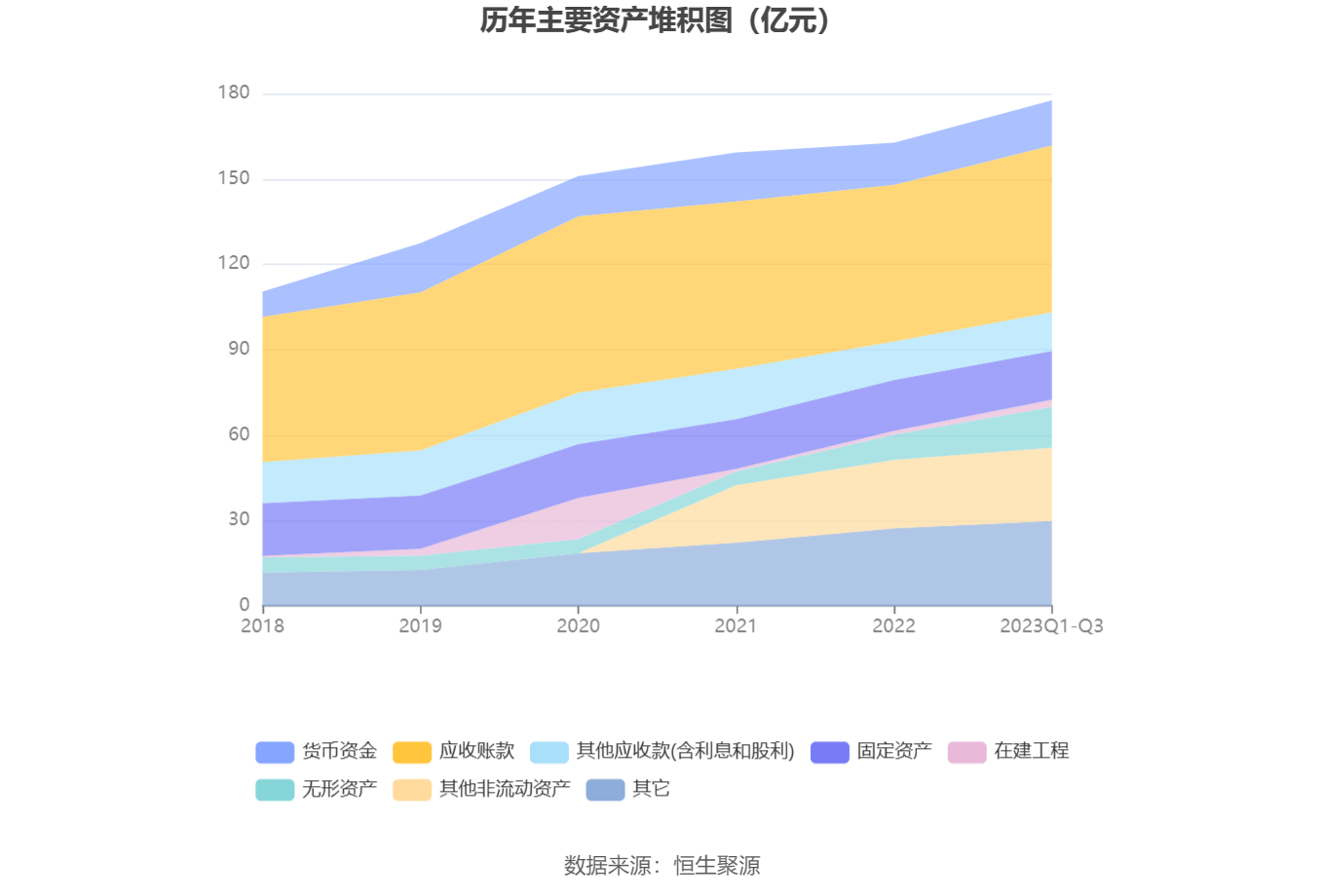 资产重大变化方面,截至2023年三季度末,公司无形资产较上年末增加61.18%,占公司总资产比重上升2.59个百分点;固定资产较上年末减少4.61%,占公司总资产比重下降1.39个百分点;应收账款较上年末增加6.57%,占公司总资产比重下降0.79个百分点;在建工程较上年末增加106.15%,占公司总资产比重上升0.69个百分点。