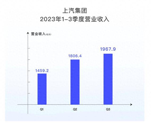 具体来看,营业收入方面,上汽集团一季度营收1459.2亿元,二季度为1806.4亿元,三季度达1967.9亿元。