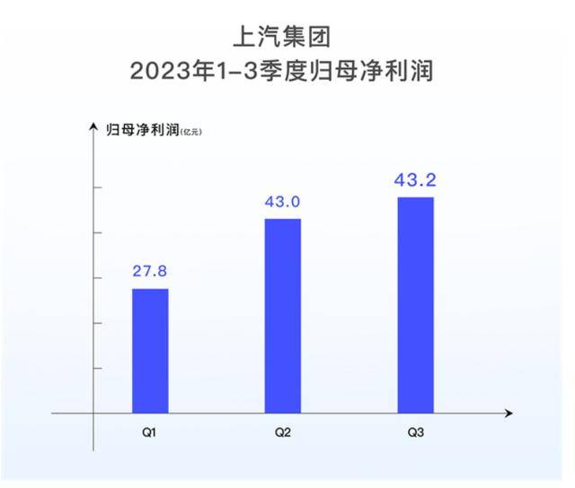 归母净利润方面,上汽集团一季度净利润为27.8亿元,二季度为43.0亿元,三季度达43.2亿元。