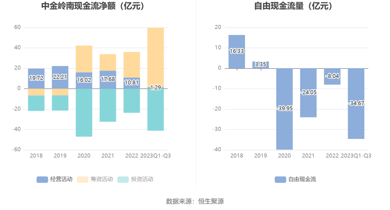 进一步统计发现,2023年前三季度公司自由现金流为-34.67亿元,上年同期为-4.72亿元。