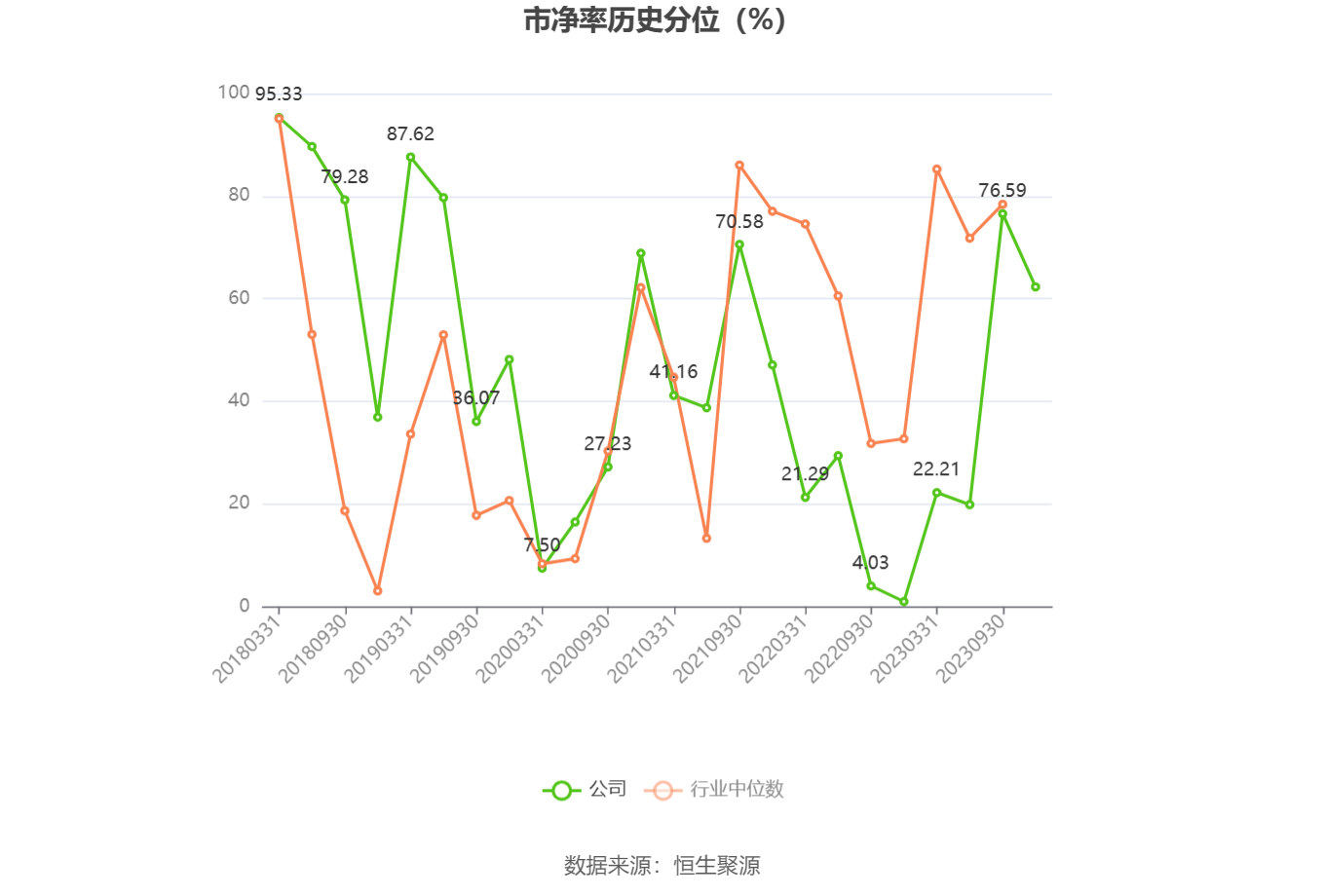 市盈率为负时,不显示当期分位数,会导致折线图中断。